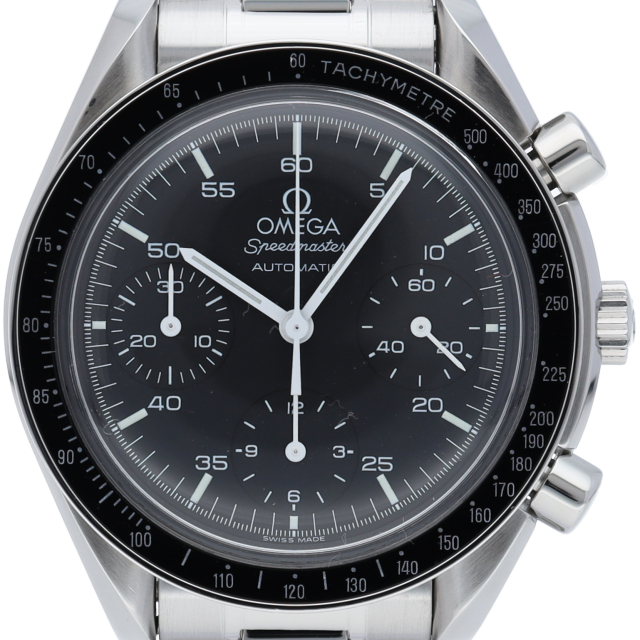 オメガを代表する人気シリーズ「スピードマスター」。プラ風防を使用したレトロな雰囲気かつシンプルにまとまったデザインがスタイルを選ばずにご使用いただけます。