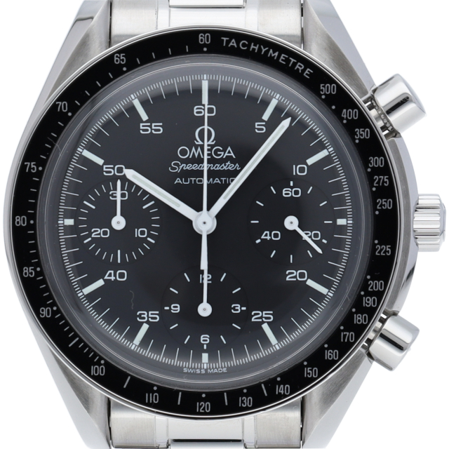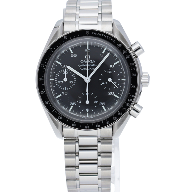 オメガを代表する人気シリーズ「スピードマスター」。プラ風防を使用したレトロな雰囲気かつシンプルにまとまったデザインがスタイルを選ばずにご使用いただけます。