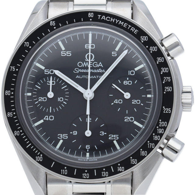 オメガを代表する人気シリーズ「スピードマスター」。プラ風防を使用したレトロな雰囲気かつシンプルにまとまったデザインがスタイルを選ばずにご使用いただけます。