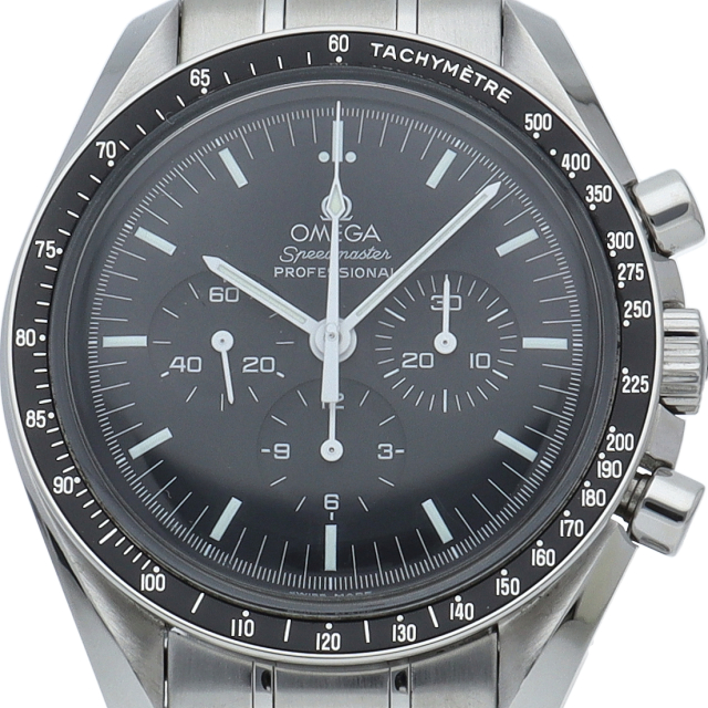 オメガを代表する人気モデルでムーンウォッチとしても有名な1本。プラ風防を使用したレトロな雰囲気と手巻ムーブメントが逆に新鮮な1本。クロノグラフ機能付。