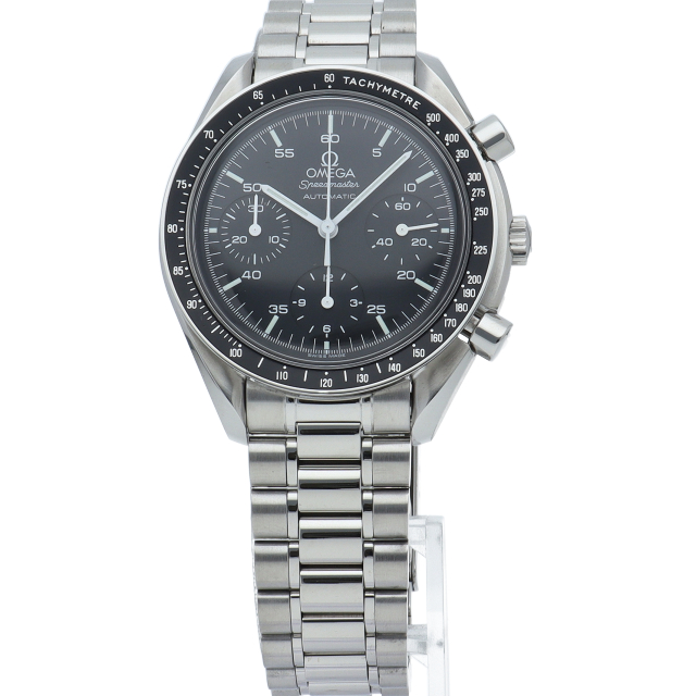 オメガを代表する人気シリーズ「スピードマスター」。プラ風防を使用したレトロな雰囲気かつシンプルにまとまったデザインがスタイルを選ばずにご使用いただけます。