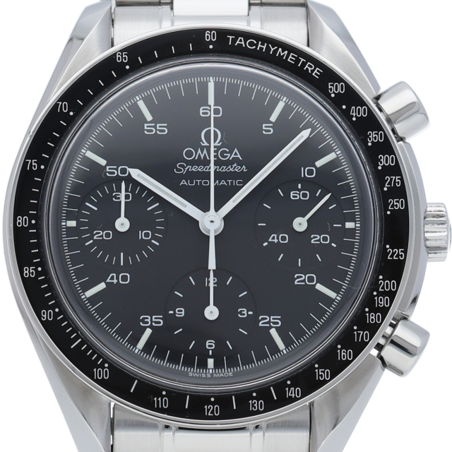 オメガを代表する人気シリーズ「スピードマスター」。プラ風防を使用したレトロな雰囲気かつシンプルにまとまったデザインがスタイルを選ばずにご使用いただけます。