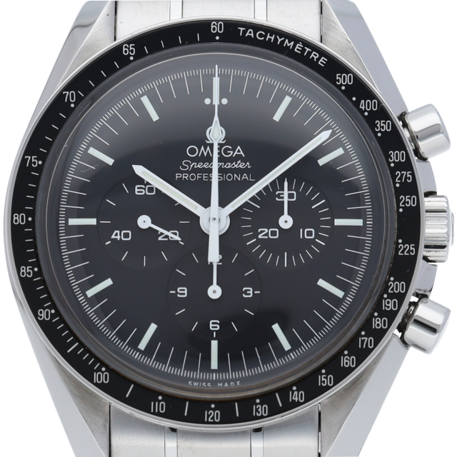 オメガを代表する人気モデルでムーンウォッチとしても有名な1本。プラ風防を使用したレトロな雰囲気と手巻ムーブメントが逆に新鮮な1本。クロノグラフ機能付。