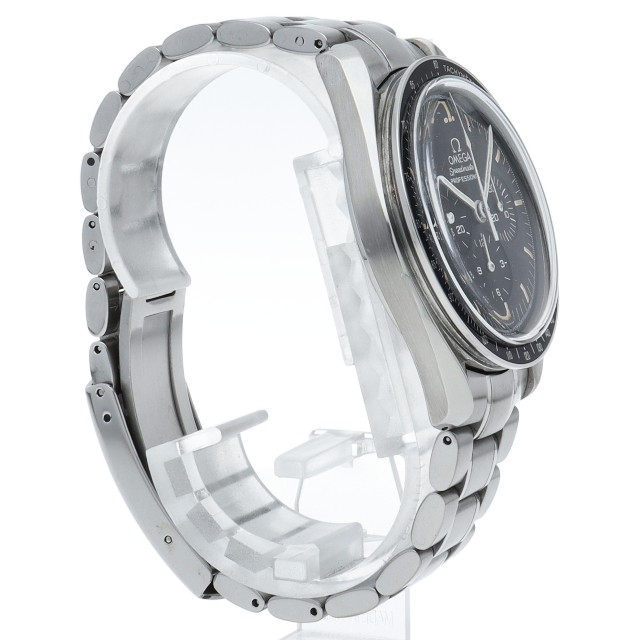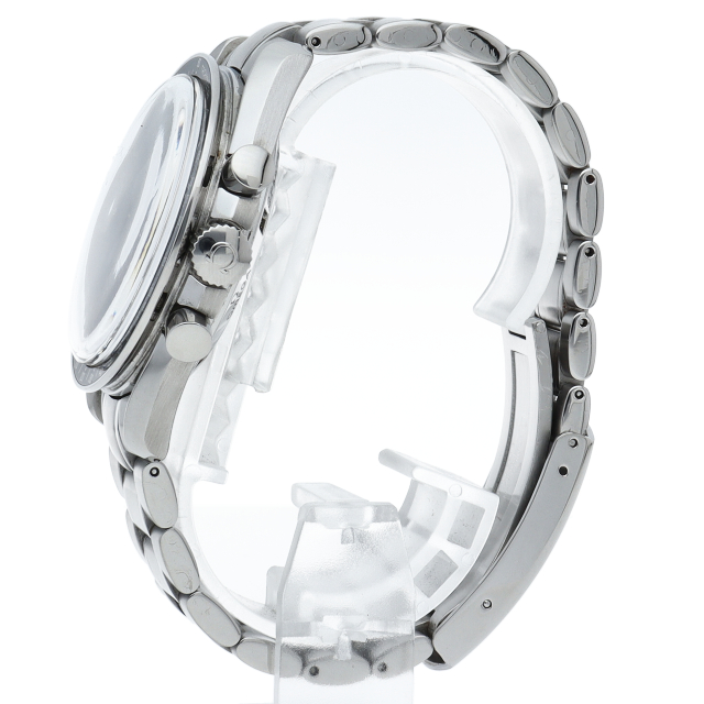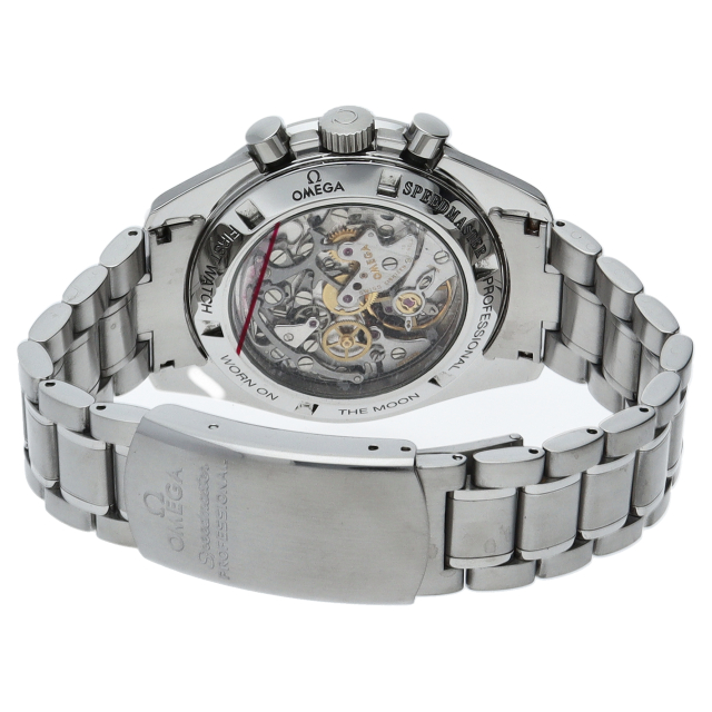 オメガを代表する人気モデルでムーンウォッチとしても有名な1本。プラ風防を使用したレトロな雰囲気とシースルーバックから覗ける手巻ムーブメントが特徴的な1本。クロノグラフ搭載。Cal.1863。