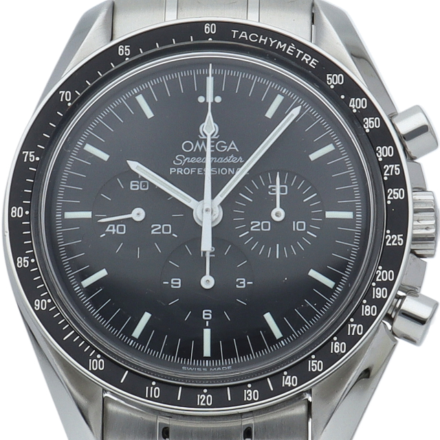 オメガを代表する人気モデルでムーンウォッチとしても有名な1本。プラ風防を使用したレトロな雰囲気と手巻ムーブメントが逆に新鮮な1本。クロノグラフ機能付。