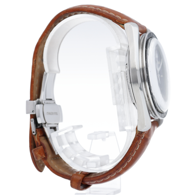 若干の使用感はございますが、全体的にきれいな商品です。裏スケルトン。プラ風防仕様。革バンドとバックルは社外品です。88.0g。