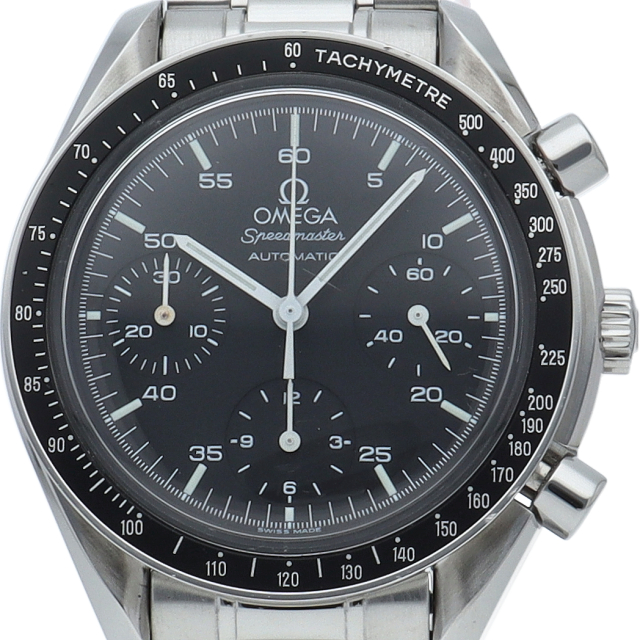 オメガを代表する人気シリーズ「スピードマスター」。プラ風防を使用したレトロな雰囲気かつシンプルにまとまったデザインがスタイルを選ばずにご使用いただけます。