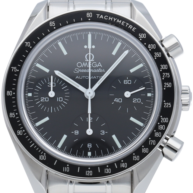 オメガを代表する人気シリーズ「スピードマスター」。プラ風防からサファイアクリスタル風防へ仕様変更された実用性の高いモデルです。すでに、生産終了となりこれからの相場が楽しみな1本です。
