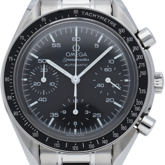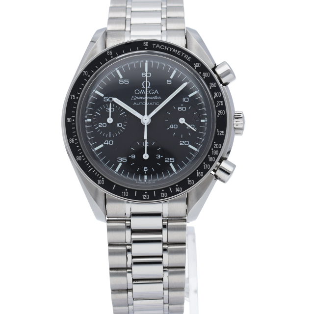 オメガを代表する人気シリーズ「スピードマスター」。プラ風防を使用したレトロな雰囲気かつシンプルにまとまったデザインがスタイルを選ばずにご使用いただけます。