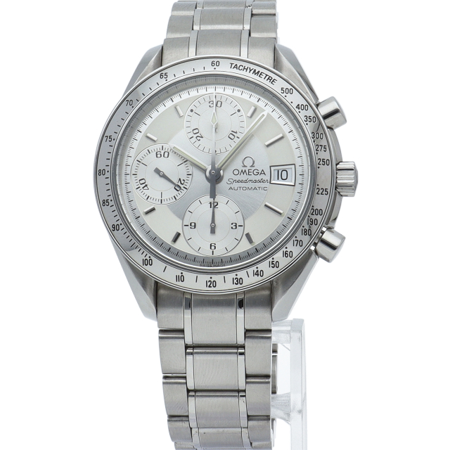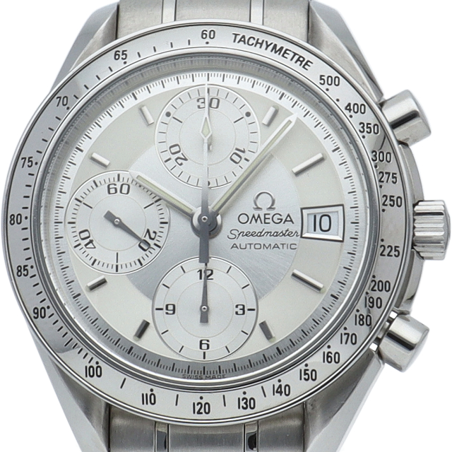 オメガの代表的な人気シリーズ「スピードマスター・デイト」。クロノグラフ・デイト表示機能付きと便利で実用性のある1本です。