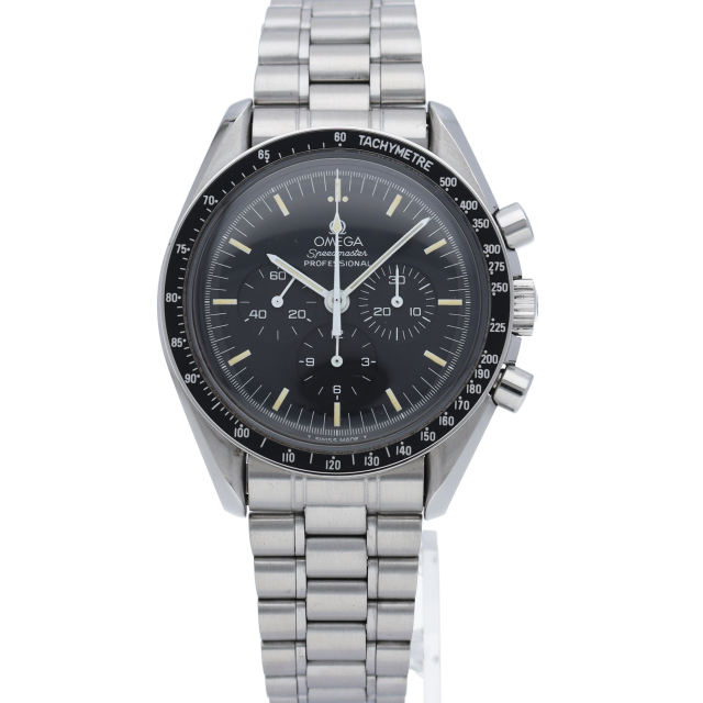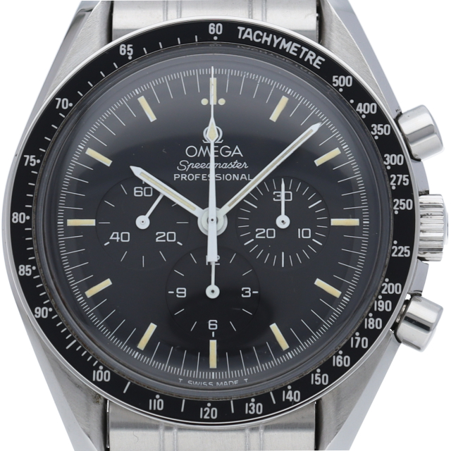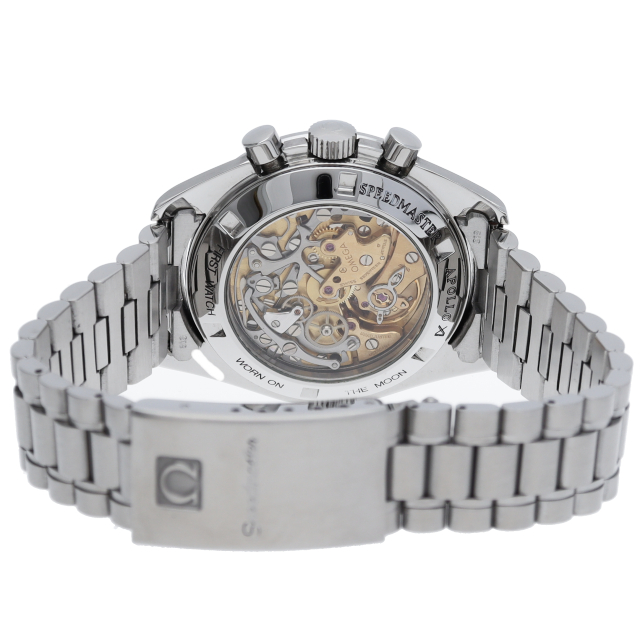 オメガを代表する人気モデルでムーンウォッチとしても有名な1本。シースルーバックから覗ける手巻ムーブメントが特徴的な1本。初期モデルにのみ搭載された金メッキのムーブメントを搭載しております。トリチウム文字盤。Cal.863。