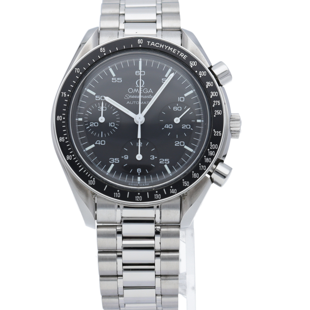 オメガを代表する人気シリーズ「スピードマスター」。プラ風防を使用したレトロな雰囲気かつシンプルにまとまったデザインがスタイルを選ばずにご使用いただけます。