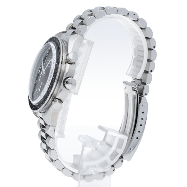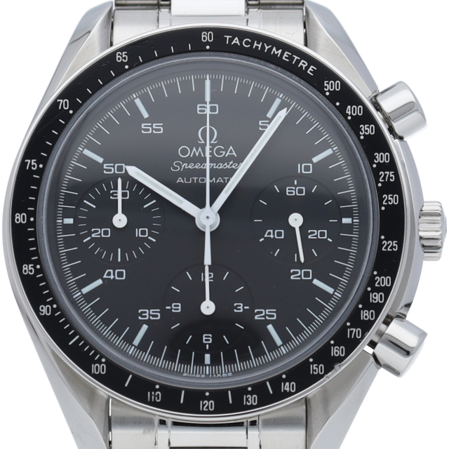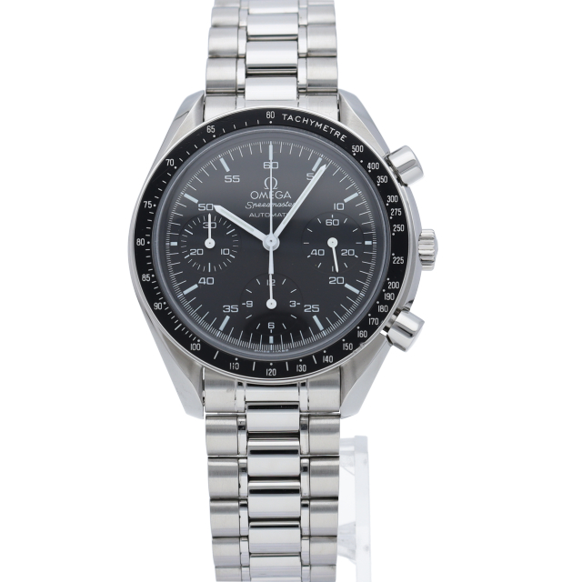 オメガを代表する人気シリーズ「スピードマスター」。プラ風防を使用したレトロな雰囲気かつシンプルにまとまったデザインがスタイルを選ばずにご使用いただけます。