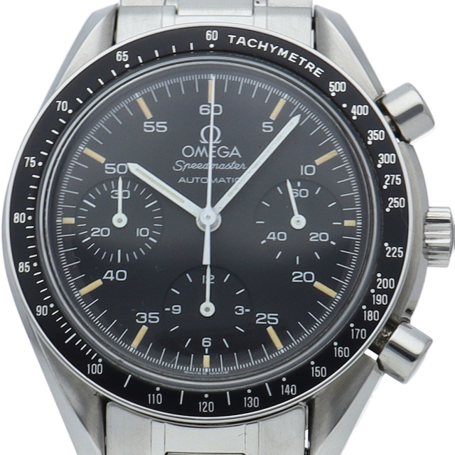 オメガを代表する人気シリーズ「スピードマスター」。プラ風防を使用したレトロな雰囲気かつシンプルにまとまったデザインがスタイルを選ばずにご使用いただけます。