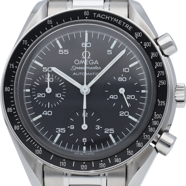 オメガを代表する人気シリーズ「スピードマスター」。プラ風防を使用したレトロな雰囲気かつシンプルにまとまったデザインがスタイルを選ばずにご使用いただけます。