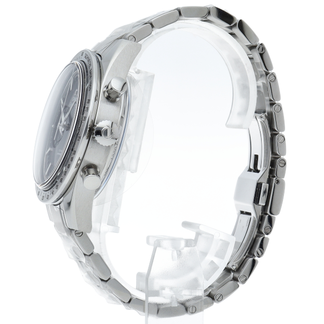 1957年に誕生したスピードマスター1stからインスパイアされたモデル。2カウンターとなり、ムーンウォッチとはまた違った雰囲気になりましたが、ブロードアロー型の針やベゼル周りなど初代を思わせる意匠はしっかり残っています。ケースはシースルーになっていますのでキャリバー9300を鑑賞することが可能です。