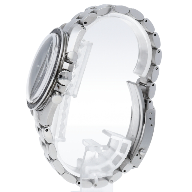 オメガを代表する人気モデルでムーンウォッチとしても有名な1本。プラ風防を使用したレトロな雰囲気とシースルーバックから覗ける手巻ムーブメントが特徴的な1本。クロノグラフ搭載。Cal.1863。