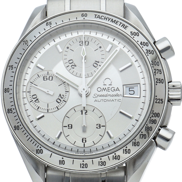 オメガの代表的な人気シリーズ「スピードマスター・デイト」。クロノグラフ・デイト表示機能付きと便利で実用性のある1本です。