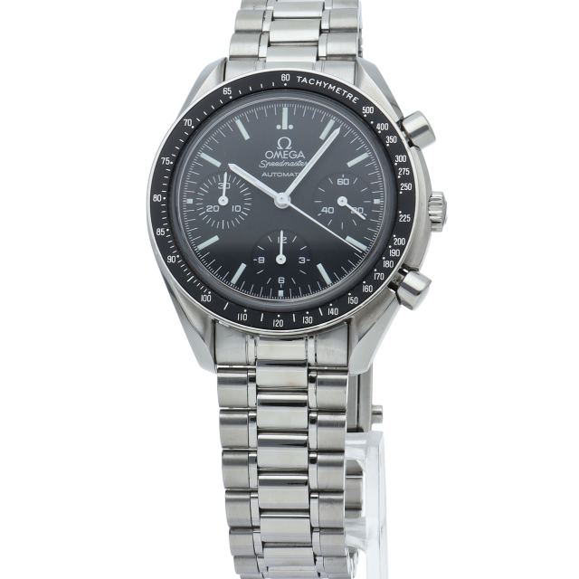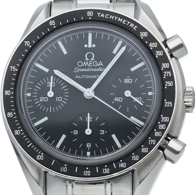 オメガを代表する人気シリーズ「スピードマスター」。プラ風防からサファイアクリスタル風防へ仕様変更された実用性の高いモデルです。すでに生産終了となり、これからの相場が楽しみな1本です。