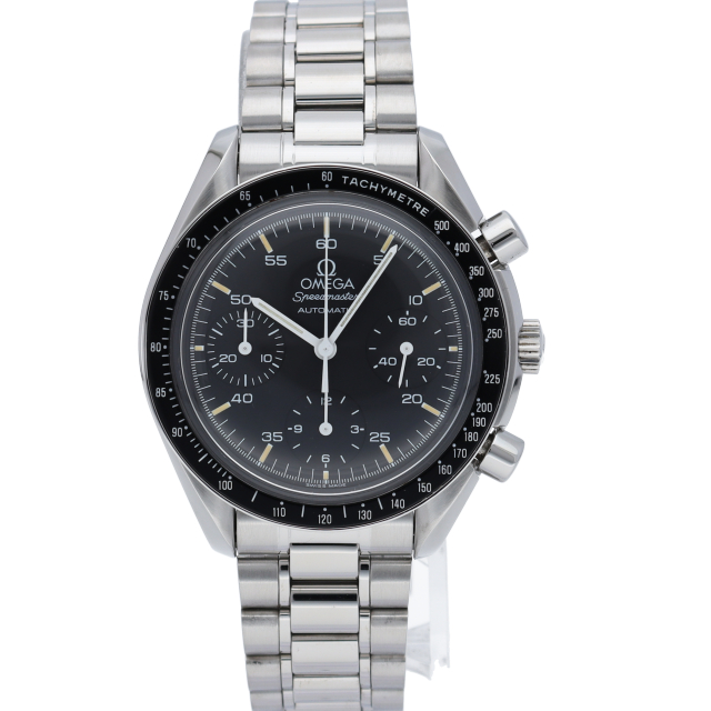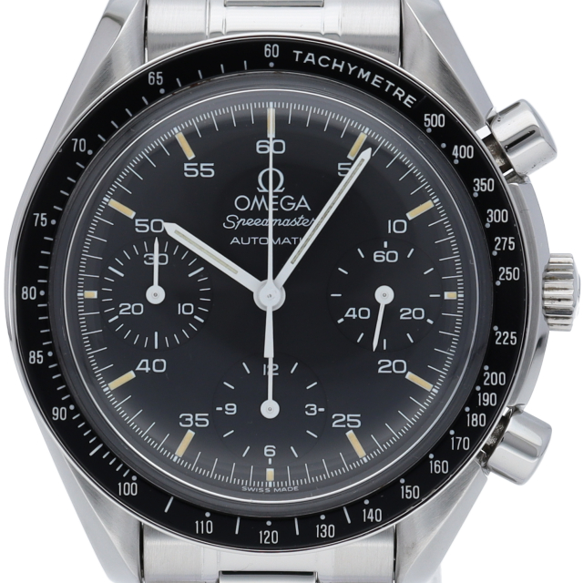 オメガを代表する人気シリーズ「スピードマスター」。プラ風防を使用したレトロな雰囲気かつシンプルにまとまったデザインがスタイルを選ばずにご使用いただけます。