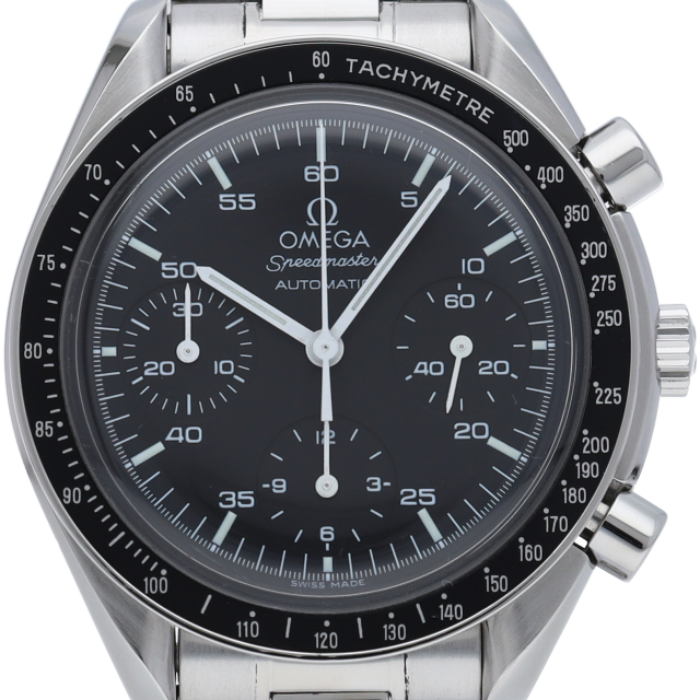 オメガを代表する人気シリーズ「スピードマスター」。プラ風防を使用したレトロな雰囲気かつシンプルにまとまったデザインがスタイルを選ばずにご使用いただけます。
