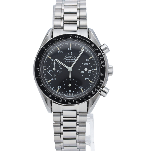 オメガを代表する人気シリーズ「スピードマスター」。プラ風防を使用したレトロな雰囲気かつシンプルにまとまったデザインがスタイルを選ばずにご使用いただけます。