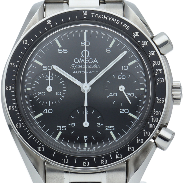 オメガを代表する人気シリーズ「スピードマスター」。プラ風防を使用したレトロな雰囲気かつシンプルにまとまったデザインがスタイルを選ばずにご使用いただけます。
