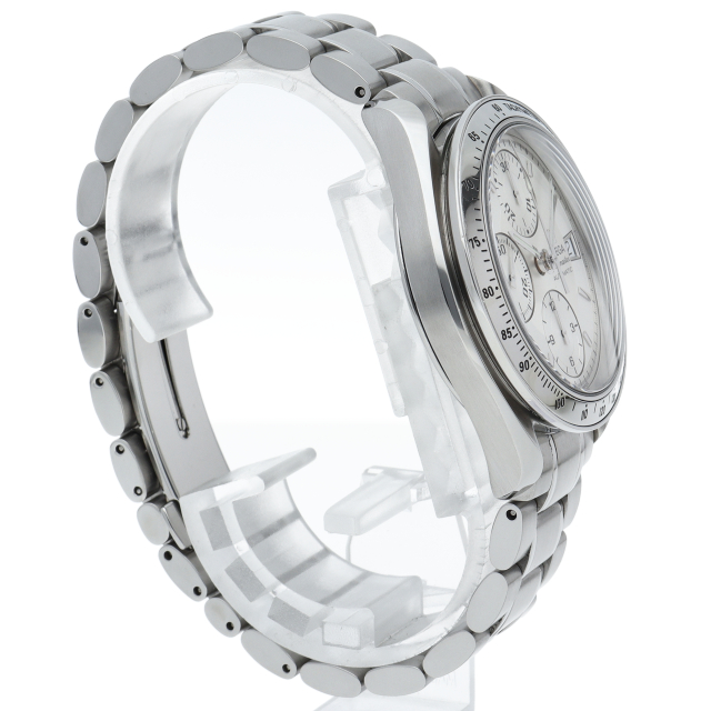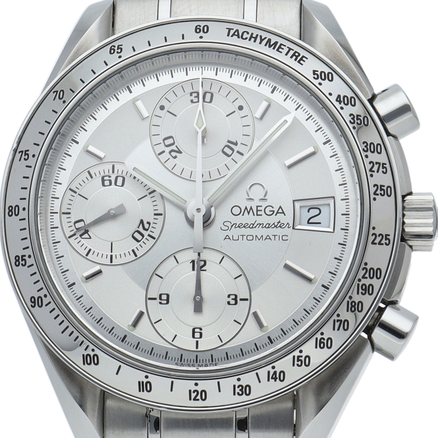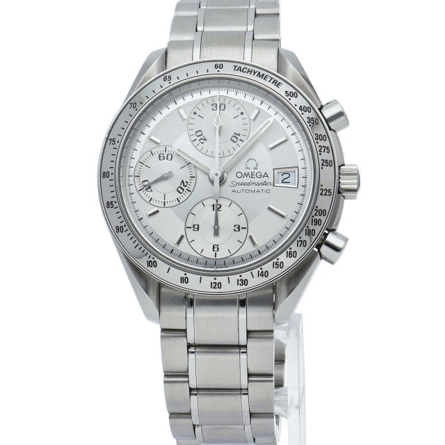 オメガの代表的な人気シリーズ「スピードマスター・デイト」。クロノグラフ・デイト表示機能付きと便利で実用性のある1本です。