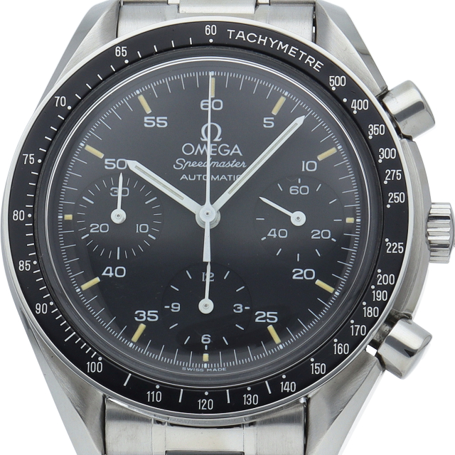 オメガを代表する人気シリーズ「スピードマスター」。プラ風防を使用したレトロな雰囲気かつシンプルにまとまったデザインがスタイルを選ばずにご使用いただけます。