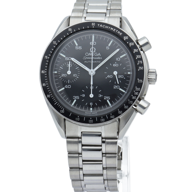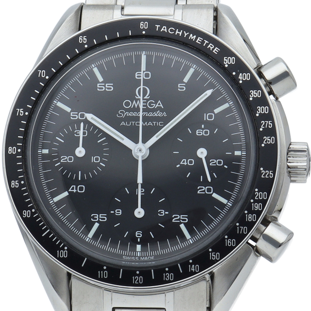 オメガを代表する人気シリーズ「スピードマスター」。プラ風防を使用したレトロな雰囲気かつシンプルにまとまったデザインがスタイルを選ばずにご使用いただけます。