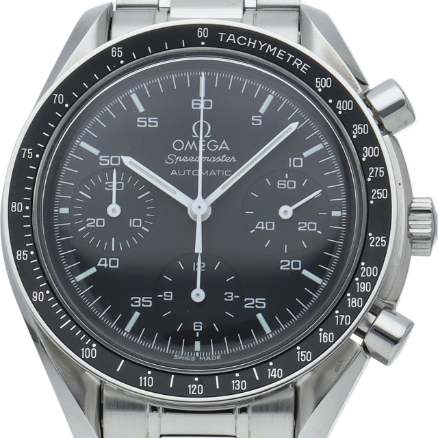 オメガを代表する人気シリーズ「スピードマスター」。プラ風防を使用したレトロな雰囲気かつシンプルにまとまったデザインがスタイルを選ばずにご使用いただけます。