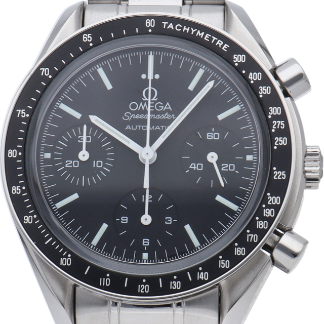オメガを代表する人気シリーズ「スピードマスター」。プラ風防からサファイアクリスタル風防へ仕様変更された実用性の高いモデルです。すでに生産終了となり、これからの相場が楽しみな1本です。