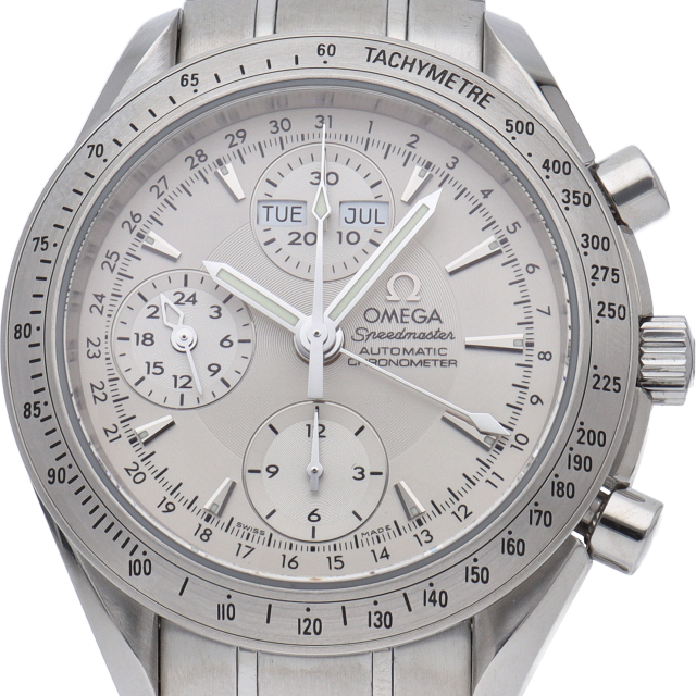 オメガの人気「スピードマスター」。クロノグラフ、月・日・曜日表示機能がついた便利な多機能ウォッチ。スタイルを選ばずにご使用いただける便利な1本。