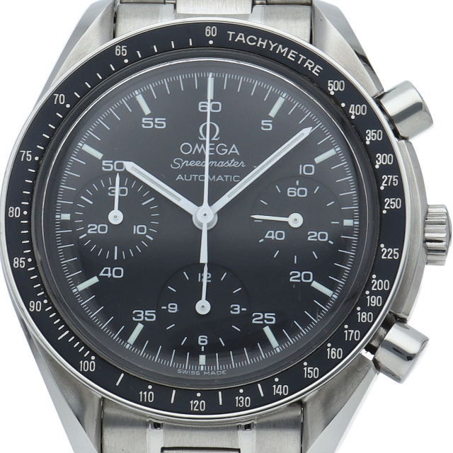 オメガを代表する人気シリーズ「スピードマスター」。プラ風防を使用したレトロな雰囲気かつシンプルにまとまったデザインがスタイルを選ばずにご使用いただけます。