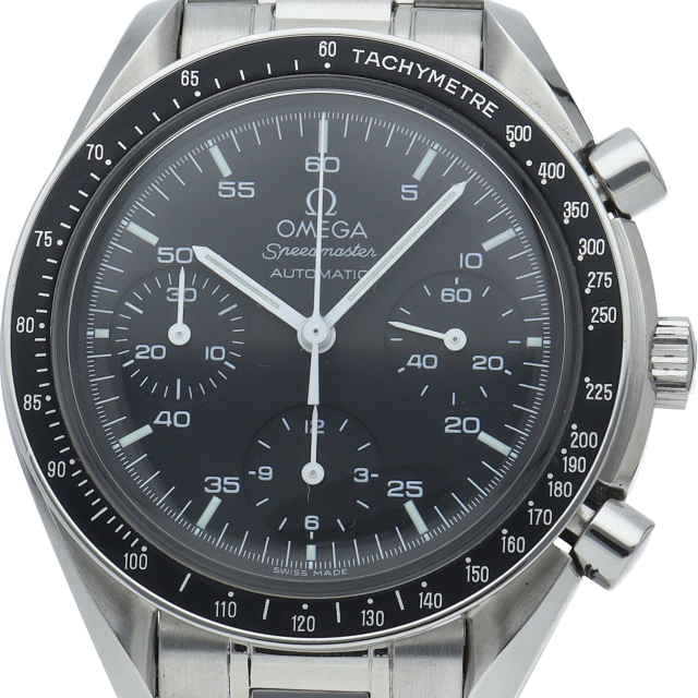 オメガを代表する人気シリーズ「スピードマスター」。プラ風防を使用したレトロな雰囲気かつシンプルにまとまったデザインがスタイルを選ばずにご使用いただけます。