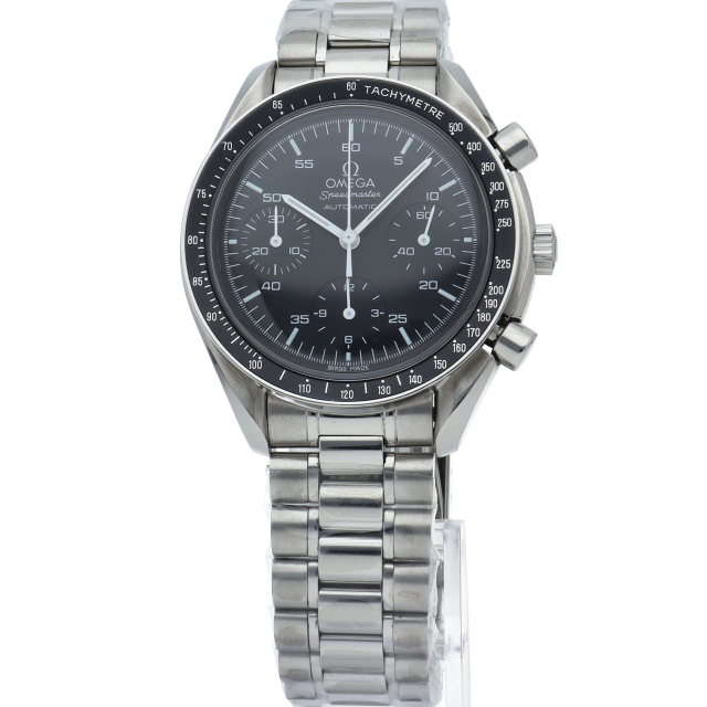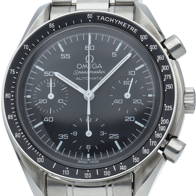 オメガを代表する人気シリーズ「スピードマスター」。プラ風防を使用したレトロな雰囲気かつシンプルにまとまったデザインがスタイルを選ばずにご使用いただけます。