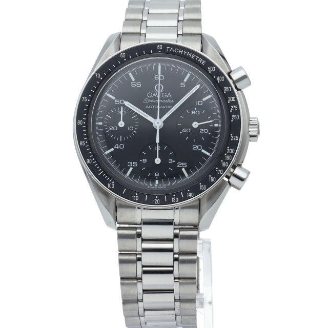 オメガを代表する人気シリーズ「スピードマスター」。プラ風防を使用したレトロな雰囲気かつシンプルにまとまったデザインがスタイルを選ばずにご使用いただけます。
