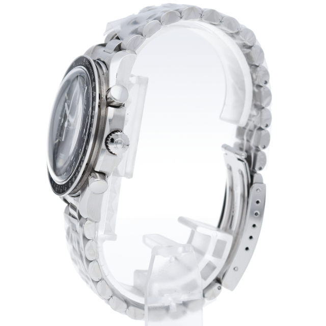 オメガを代表する人気シリーズ「スピードマスター」。プラ風防を使用したレトロな雰囲気かつシンプルにまとまったデザインがスタイルを選ばずにご使用いただけます。