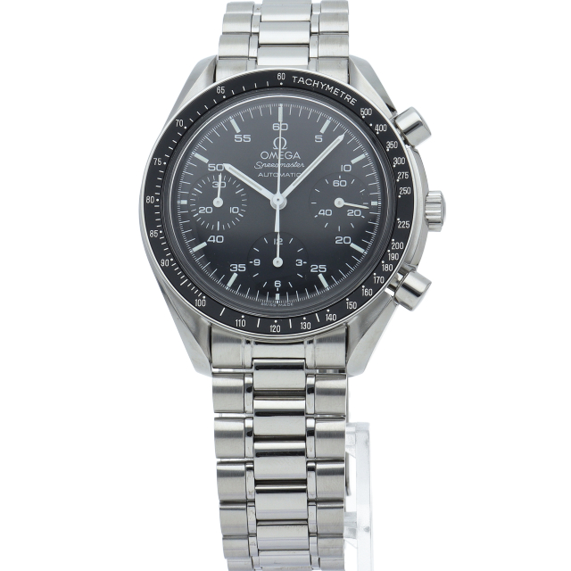 オメガを代表する人気シリーズ「スピードマスター」。プラ風防を使用したレトロな雰囲気かつシンプルにまとまったデザインがスタイルを選ばずにご使用いただけます。