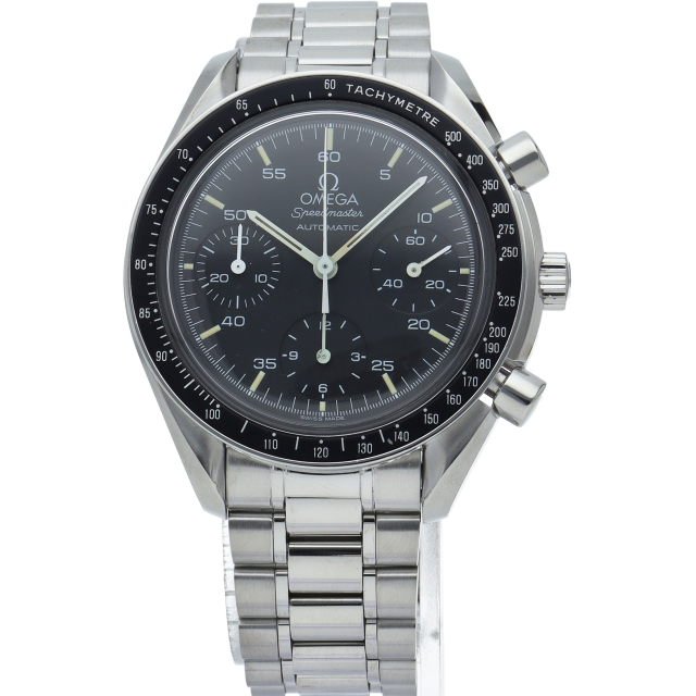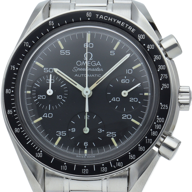 オメガを代表する人気シリーズ「スピードマスター」。プラ風防を使用したレトロな雰囲気かつシンプルにまとまったデザインがスタイルを選ばずにご使用いただけます。