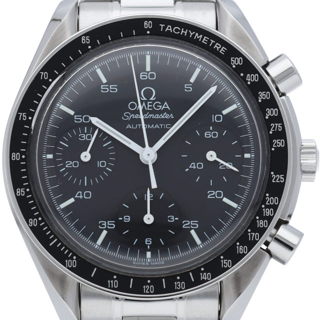 オメガを代表する人気シリーズ「スピードマスター」。プラ風防を使用したレトロな雰囲気かつシンプルにまとまったデザインがスタイルを選ばずにご使用いただけます。