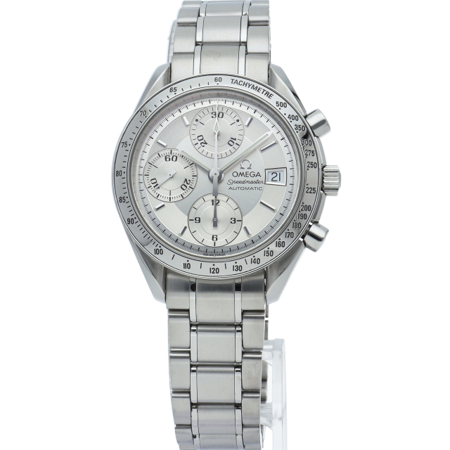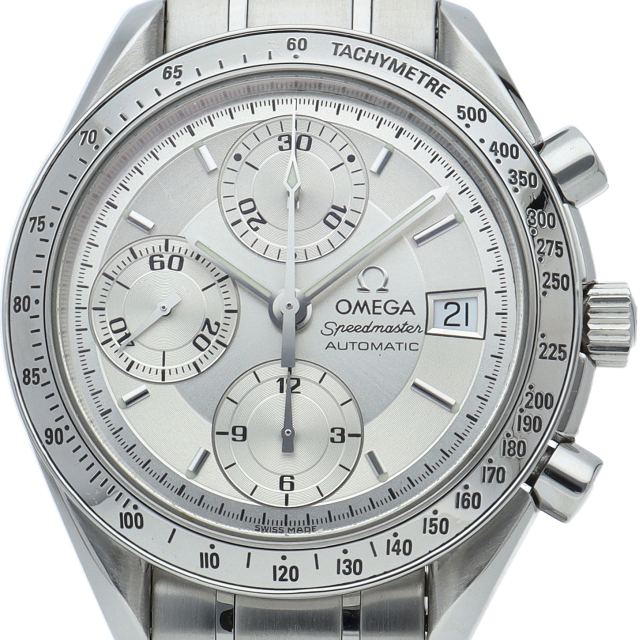 オメガの代表的な人気シリーズ「スピードマスター・デイト」。クロノグラフ・デイト表示機能付きと便利で実用性のある1本です。