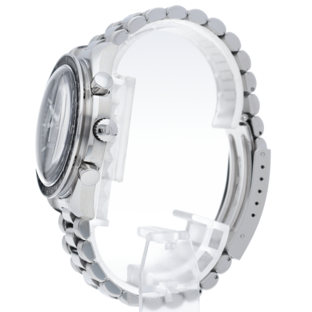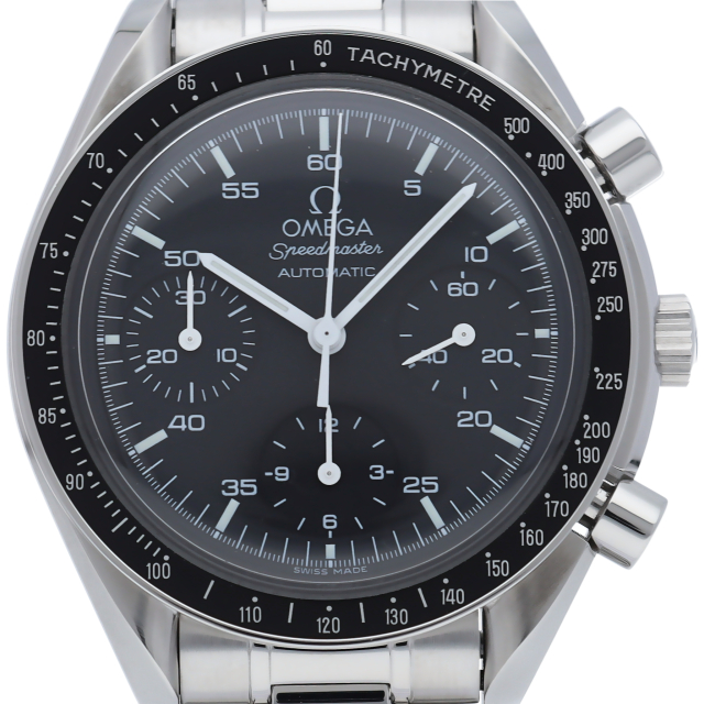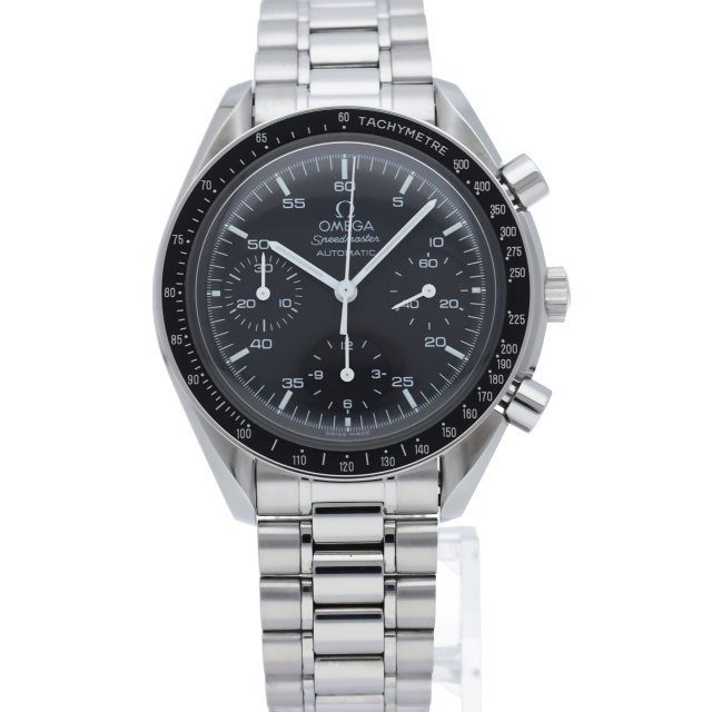 オメガを代表する人気シリーズ「スピードマスター」。プラ風防を使用したレトロな雰囲気かつシンプルにまとまったデザインがスタイルを選ばずにご使用いただけます。