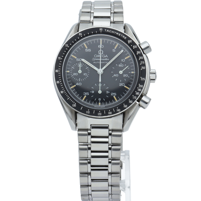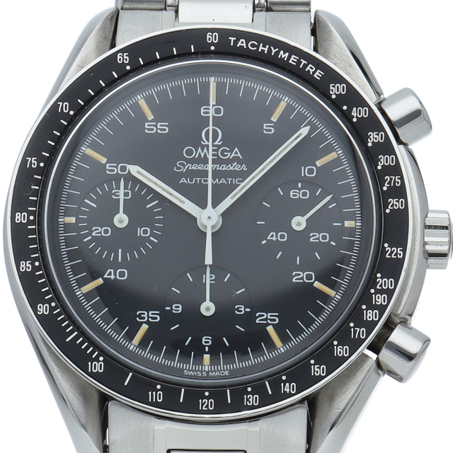 オメガを代表する人気シリーズ「スピードマスター」。プラ風防を使用したレトロな雰囲気かつシンプルにまとまったデザインがスタイルを選ばずにご使用いただけます。