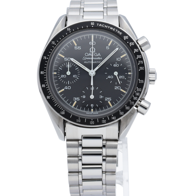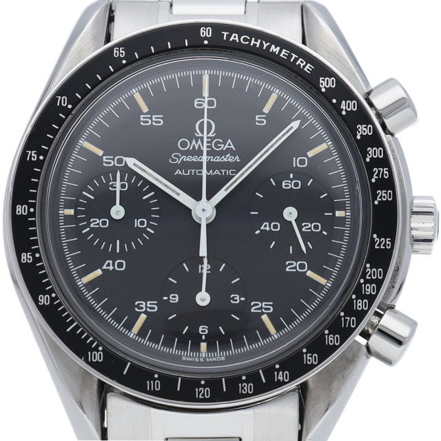 オメガを代表する人気シリーズ「スピードマスター」。プラ風防を使用したレトロな雰囲気かつシンプルにまとまったデザインがスタイルを選ばずにご使用いただけます。