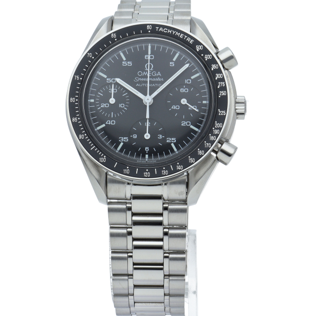 オメガを代表する人気シリーズ「スピードマスター」。プラ風防を使用したレトロな雰囲気かつシンプルにまとまったデザインがスタイルを選ばずにご使用いただけます。
