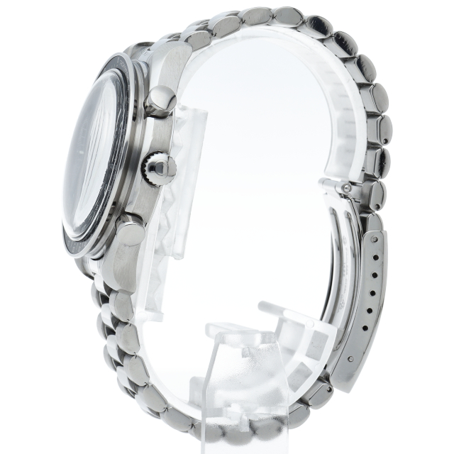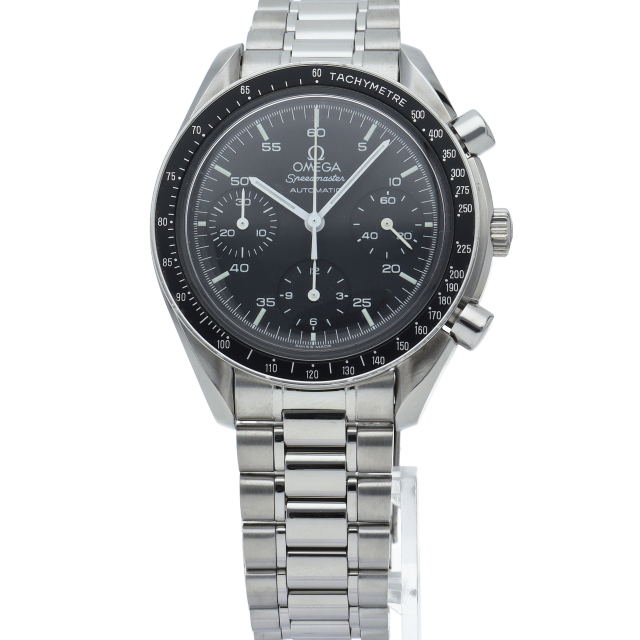 オメガを代表する人気シリーズ「スピードマスター」。プラ風防を使用したレトロな雰囲気かつシンプルにまとまったデザインがスタイルを選ばずにご使用いただけます。