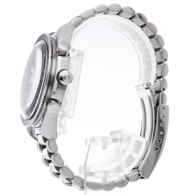 オメガを代表する人気シリーズ「スピードマスター」。プラ風防を使用したレトロな雰囲気かつシンプルにまとまったデザインがスタイルを選ばずにご使用いただけます。