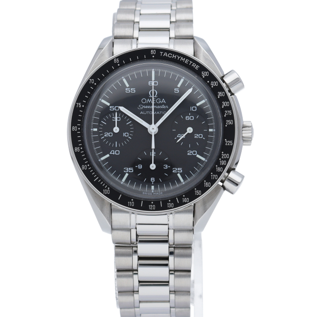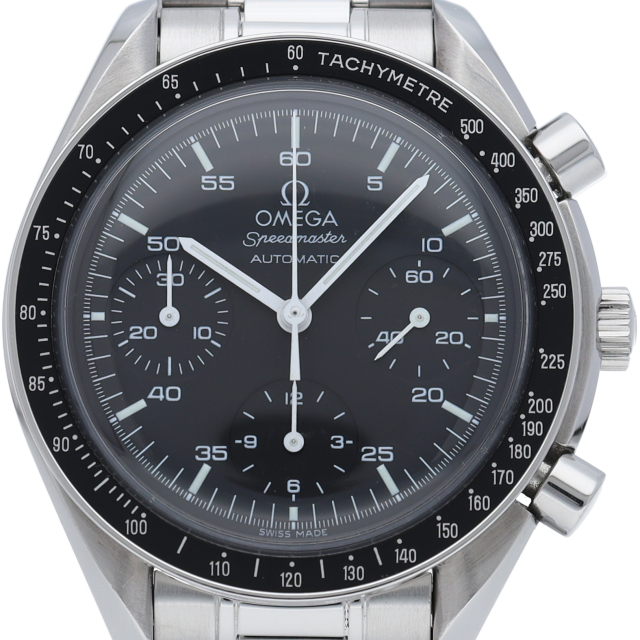 オメガを代表する人気シリーズ「スピードマスター」。プラ風防を使用したレトロな雰囲気かつシンプルにまとまったデザインがスタイルを選ばずにご使用いただけます。