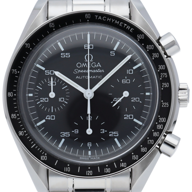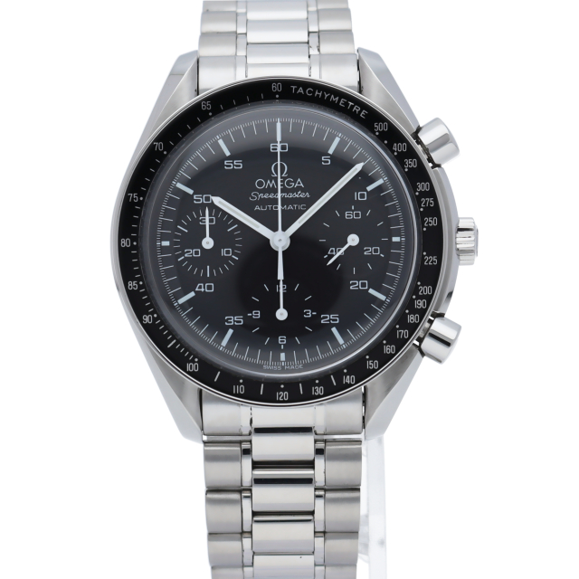 オメガを代表する人気シリーズ「スピードマスター」。プラ風防を使用したレトロな雰囲気かつシンプルにまとまったデザインがスタイルを選ばずにご使用いただけます。